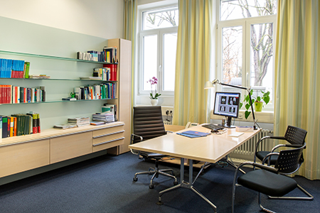 Wir wissen, wie wichtig ein angenehmes Umfeld gerade in schwierigen Lebensphasen ist. Unsere Praxisräumlichkeiten sind darauf ausgelegt, Ihnen eine angenehme und komfortable Umgebung während Ihrer Behandlung zu bieten. Wir legen großen Wert auf eine patientenorientierte Atmosphäre, in der Sie sich wohl und gut aufgehoben fühlen können. Ein helles, einladendes Ambiente, eine ansprechende, ruhige Farbgestaltung und viel Raum machen unsere Praxisräume zu Orten des Wohlbefindens.